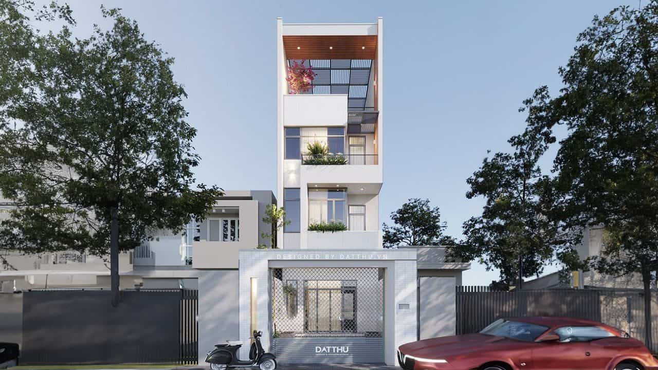 Nhà phố 4 tầng hiện đại có sân thượng thoáng đãng, thư giãn. Công năng tiện nghi và thuận tiện cho sinh hoạt của các thành viên trong gia đình. Đặc biệt phù hợp với những gia đình nhiều thế hệ.